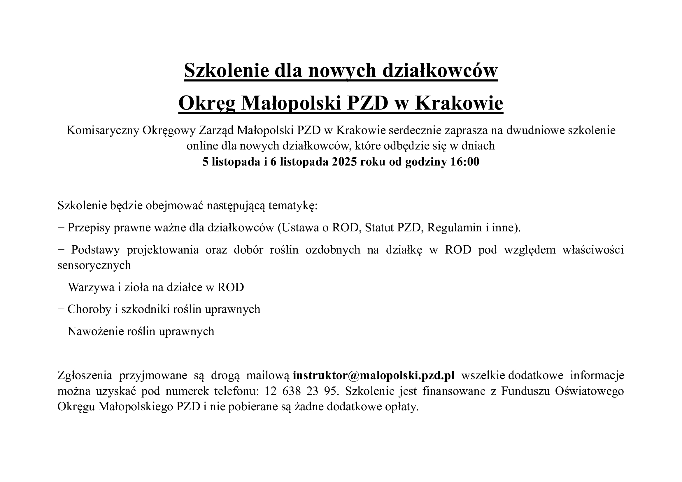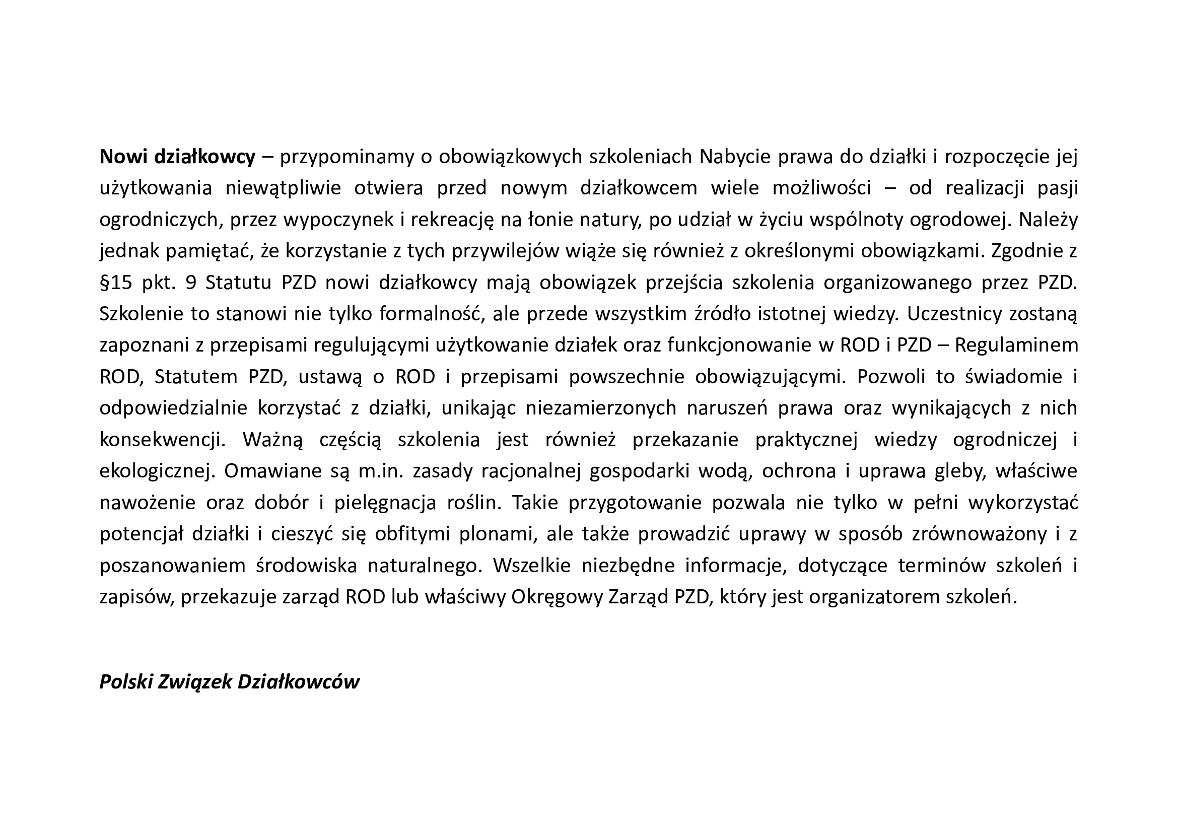 szkolenie dla nowych działkowców
