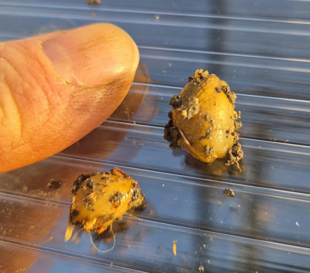 Ale teraz, w cieplejsze dni, mamy idealny moment, aby zajrzeć pod deski, deszczułki, kamienie, kostki, wiadra i doniczki zostawione jesienią, między cegły, itp. Ślimaki nagie będące zmorą ogrodników, czyli przede wszystkim śliniki, składają jaja jesienią i potem giną. Teraz z jaj wylęgają się młode osobniki, a te, które wylęgły się jesienią i przezimowały, zaczynają się pokazywać bliżej powierzchni – zwłaszcza w ciepłych, przytulnych miejscach jak szklarnie. Mają ok 1-2cm długości i charakterystyczny kolor, od żółto-musztardowego, przez odcienie rudości do brązowego. Zróbmy przegląd i wynieśmy je z naszych ogródków zanim się powiększy ich rozmiar i apetyt.