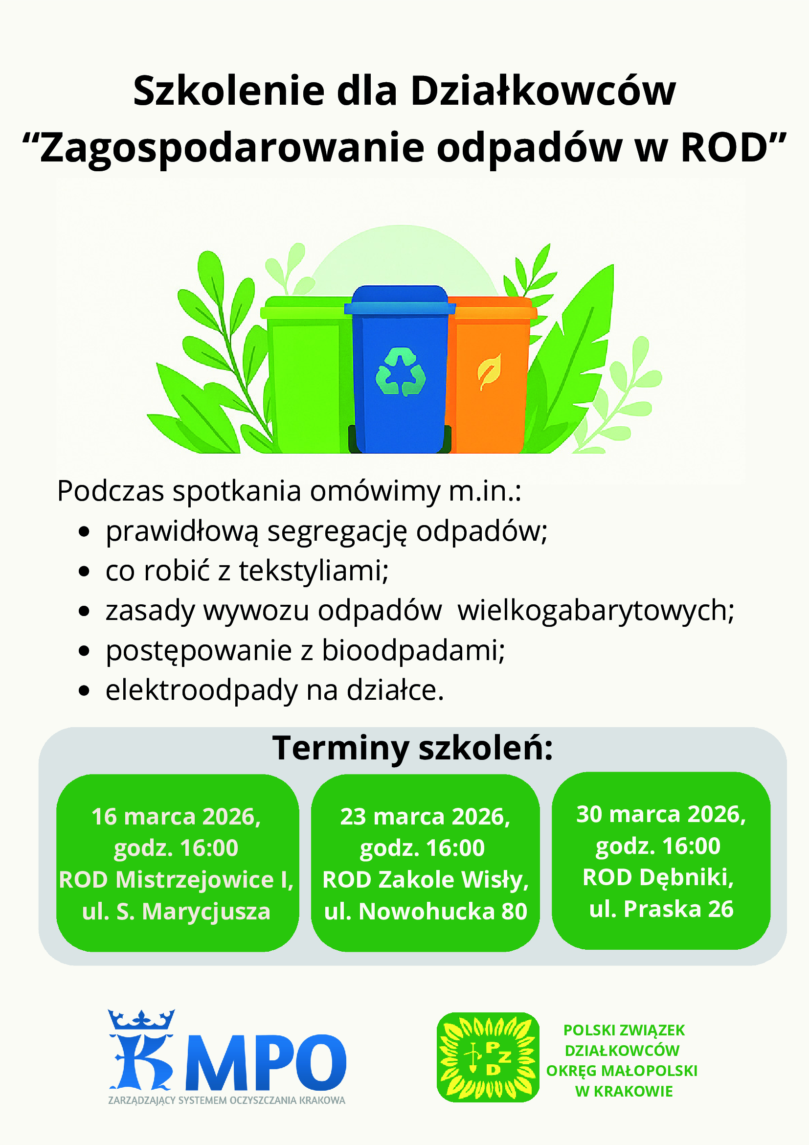 Kategorie informacje zagospodarowanie odpadów w ROD Autor wpisu Autor: adminYol Data wpisu 2 marca 2026 ← odbiór odpadów zielonych w workach → wspomnienie…